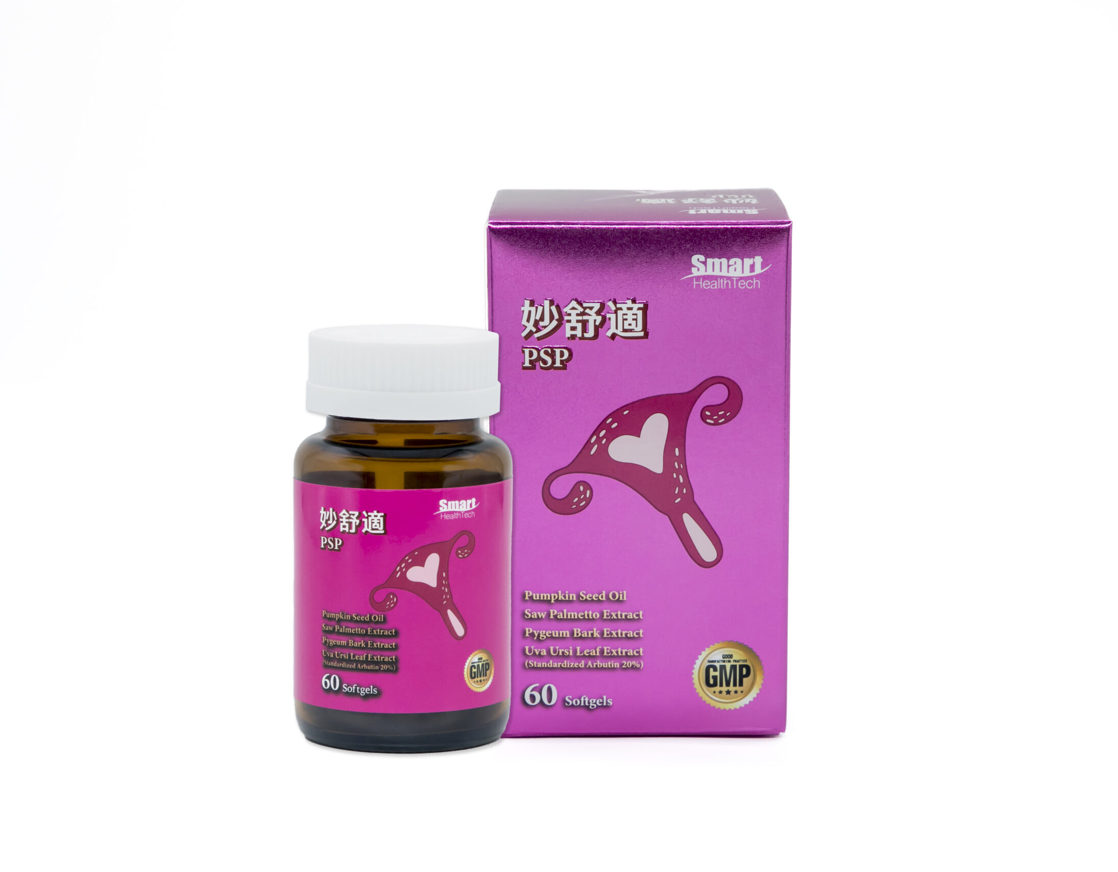 A: PSP 妙舒適是一款綜合型的女性尿道保健品。我們採用熊果葉與臀果木,能主動地促進尿流、維護女性膀胱機能。同時,配方中的南瓜籽油能減少夜尿、尿頻等症狀,全面保護泌尿系統。